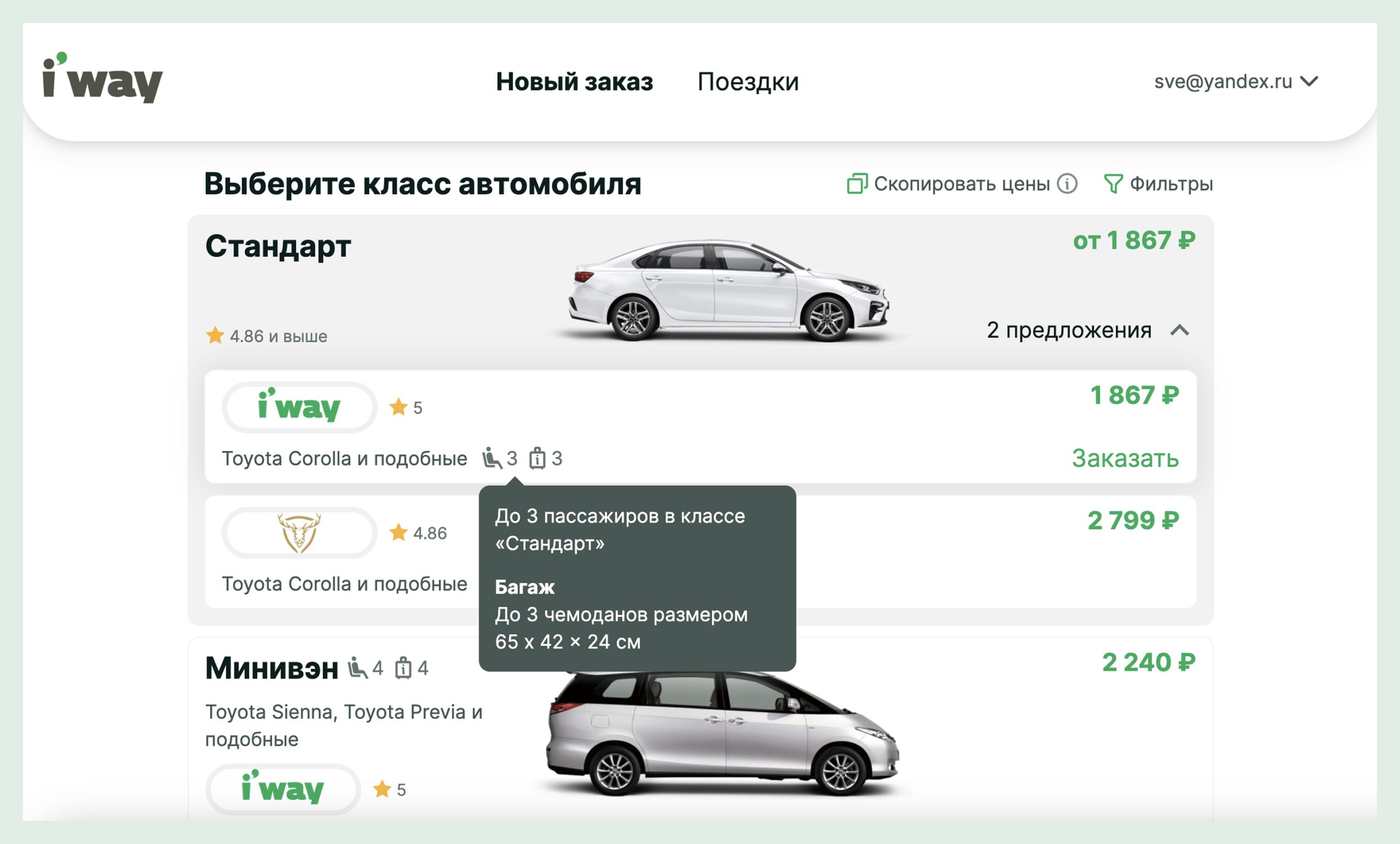 Отобразили вместимость авто на этапе выбора класса. Теперь пассажир сразу видит, сколько людей и сколько чемоданов поместится в автомобиль.